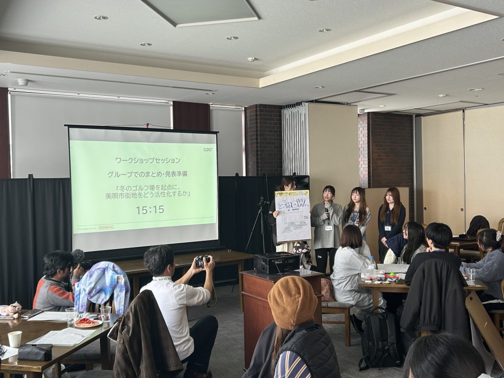「冬のゴルフ場を起点に美唄市街地をどのように活性化させるか」についてグループ発表を行いました。
